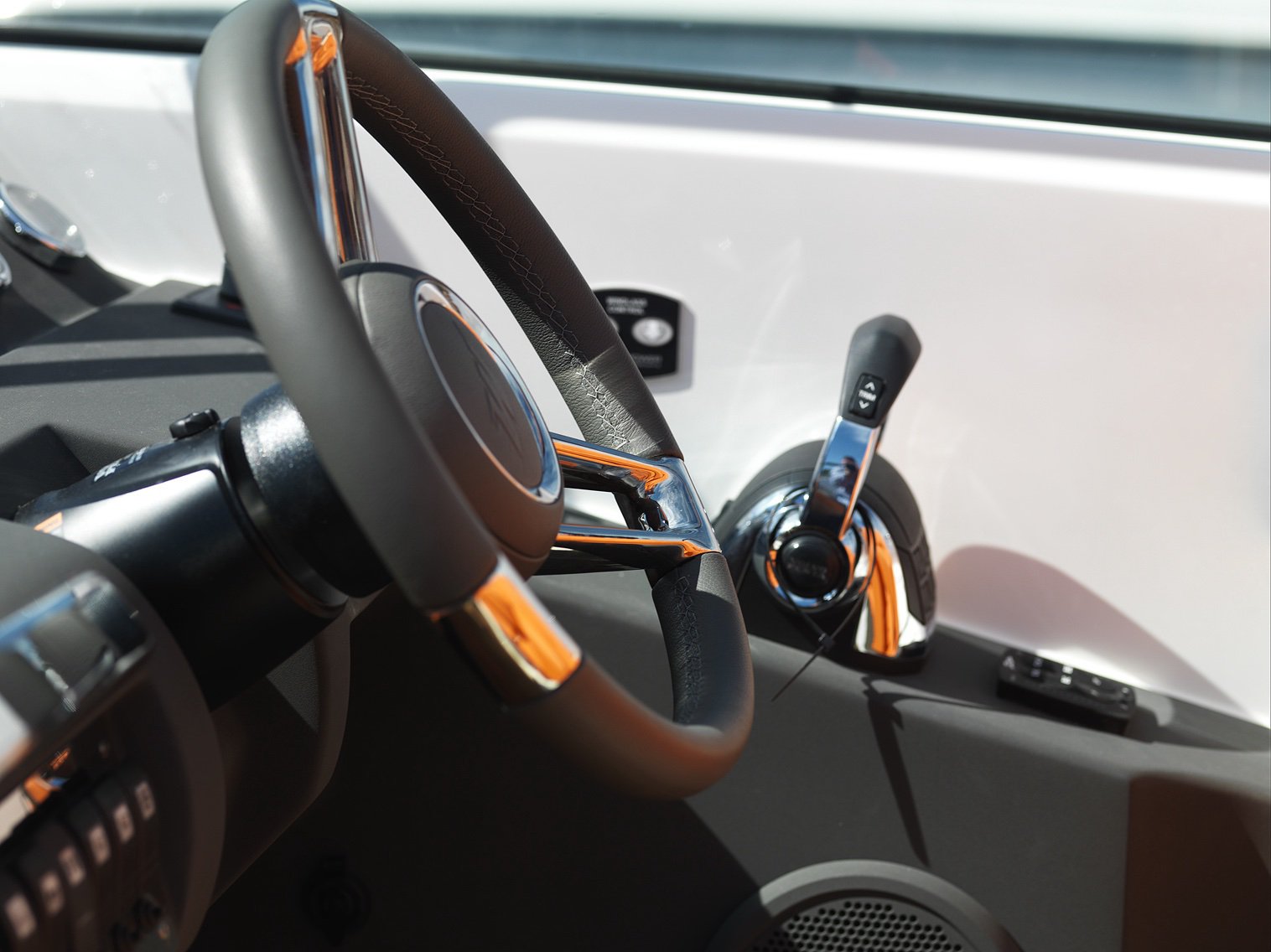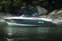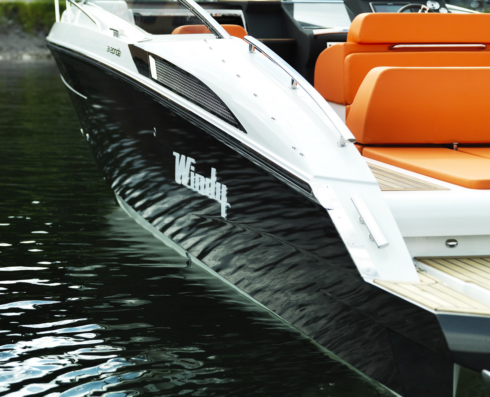 Why? Because this boat brings engine power so convincingly down into the water. Together with her top notch performance hull that offers dynamism and safety as well as, at the same time, conveying an exclusive, unique boat ride.