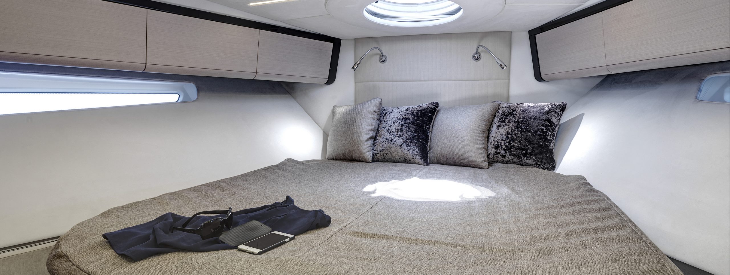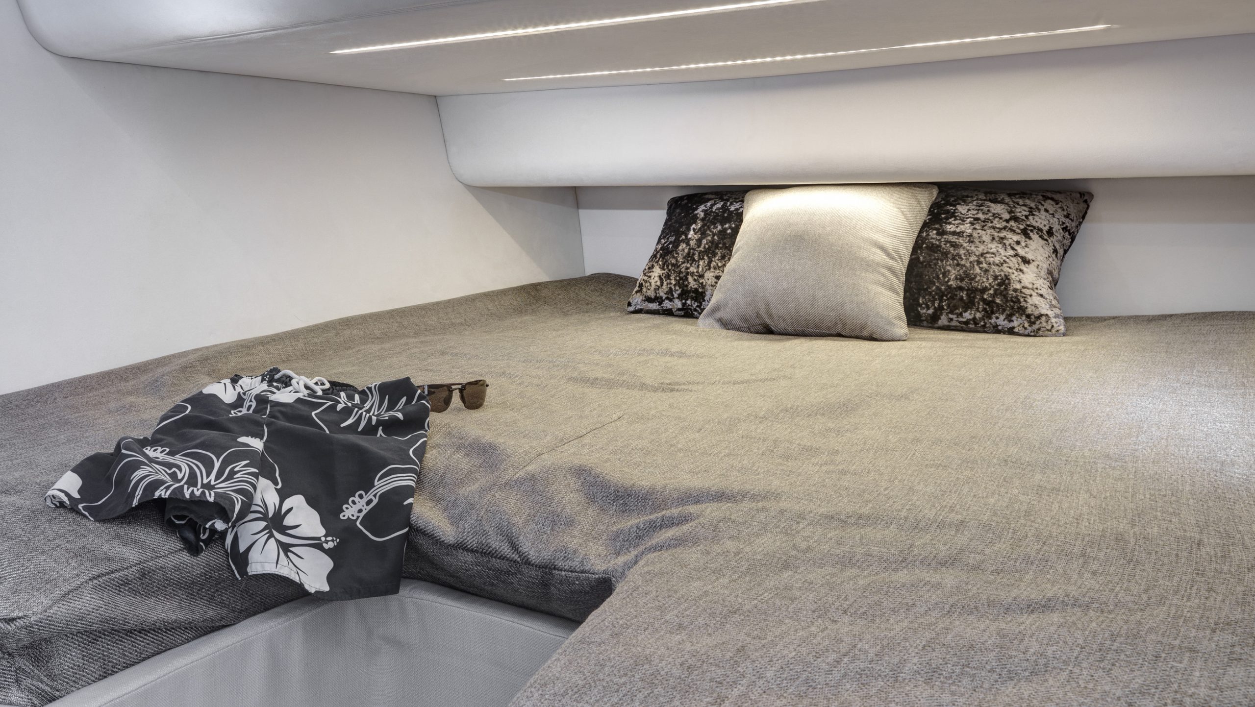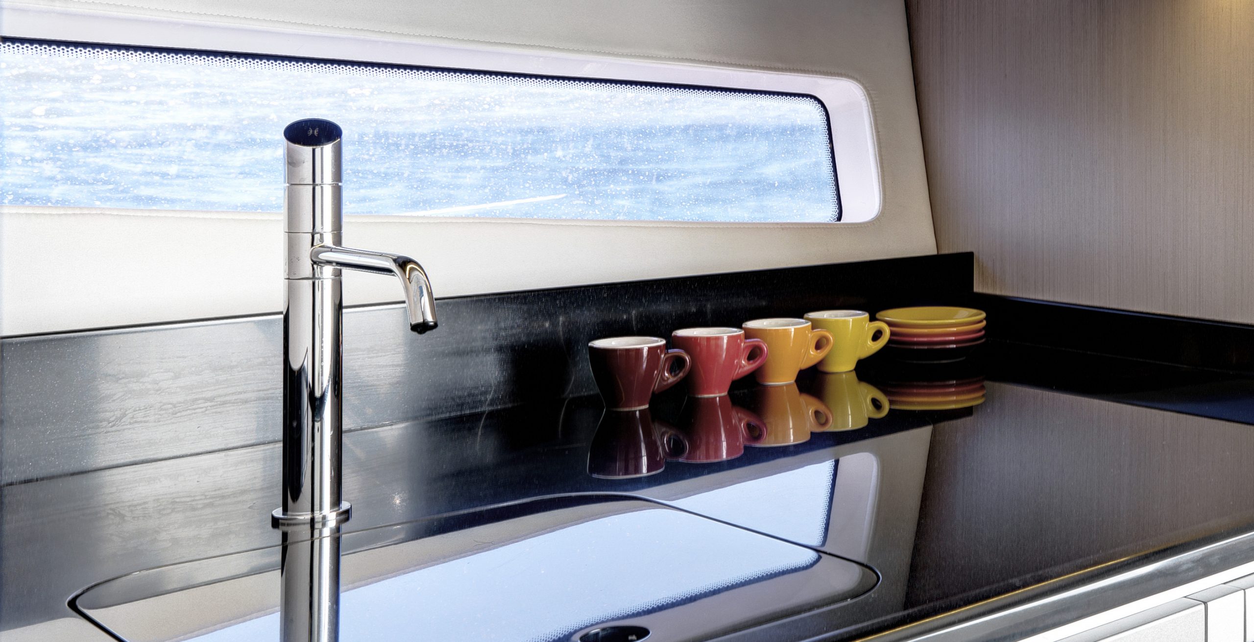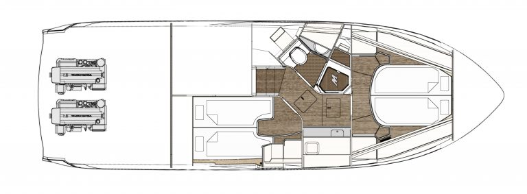 The Camira’s sleek exterior lines bear the distinctive mark of superyacht designers, Dubois, while her stylish interior is meticulously conceived by Design Unlimited. The standard two–cabin layout offers a choice of galley arrangements.
