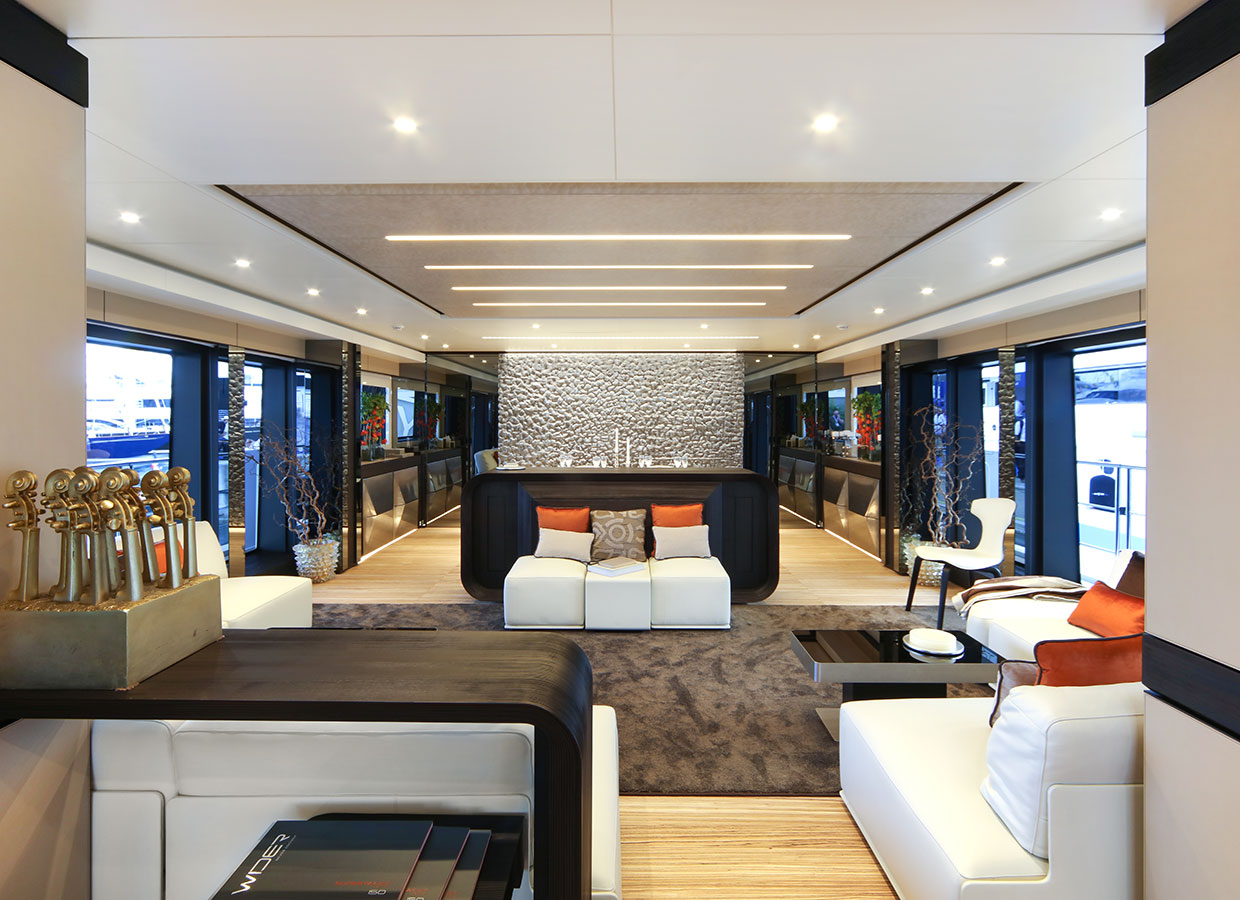 The WIDER 150 is distinctive in many ways apart from the built-in ecological spirit. One characteristic is the ability to offer a number of features, the privilege of which is usually exclusive to larger superyachts.