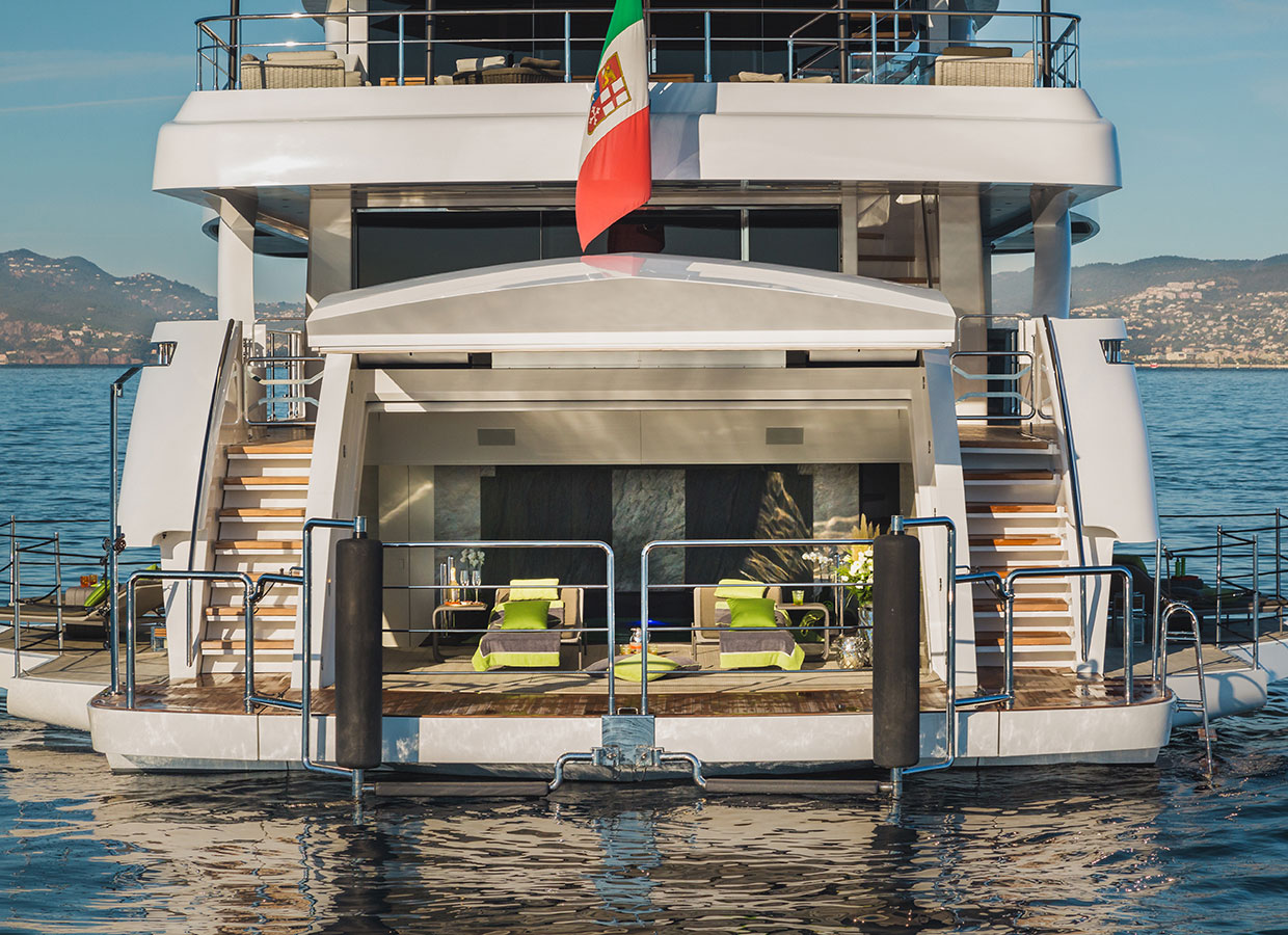 Thanks to its 90 m2 surface at water level, the Beach Club of the WIDER 150 is the largest in this category of yachts.