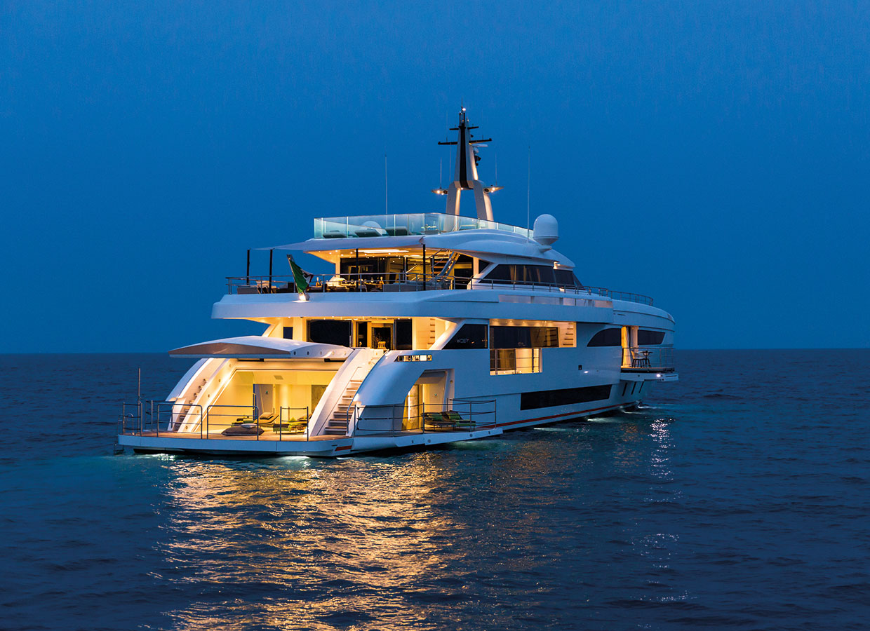 From its launch, this 46-metre superyacht built entirely in aluminium, had a specific purpose: to create a new dimension in layouts intensifying contact with the sea. Her ability to do this and offer larger living spaces in a yacht of this size is attributable, above all, to her serial hybrid propulsion.