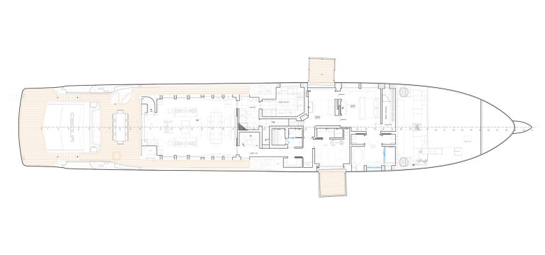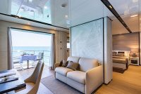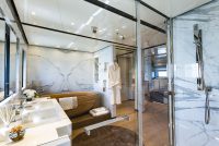 One of the most exceptional features on board can be found in the area reserved for the owner: an apartment that extends across the complete beam of the yacht with two private balconies overlooking the sea.