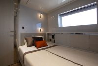 The traditional engine room has been replaced by a more flexible structure allowing the use of the central part of the hull for accommodation, so more spacious guest cabins can be designed at the heart, and the most stable zone, of the yacht. A Power Generator Room is in the bow and a Technical Room in the stern where the lithium polymer (LiPo) batteries are housed. Only possible because the power is transferred to the azimuthal thrusters via flexible wiring replacing the rigid drive shafts.