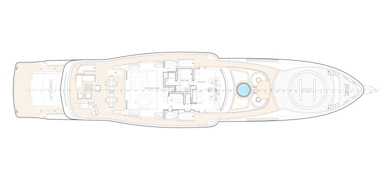 On the upper deck towards the bow there is a helipad that can easily be transformed into a dance floor.