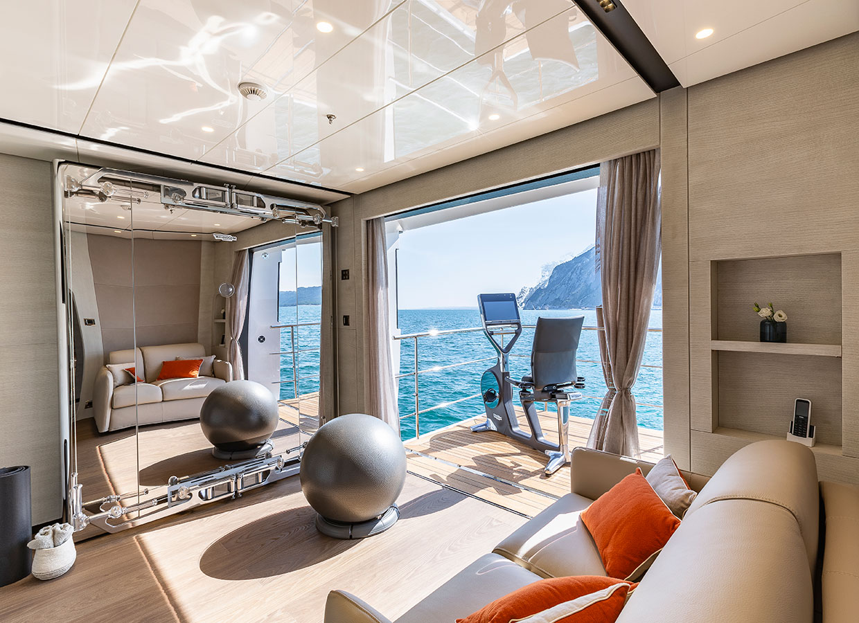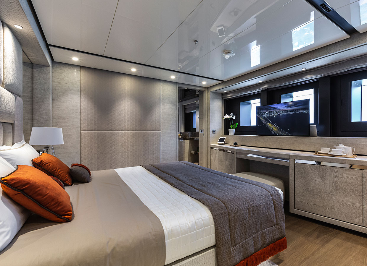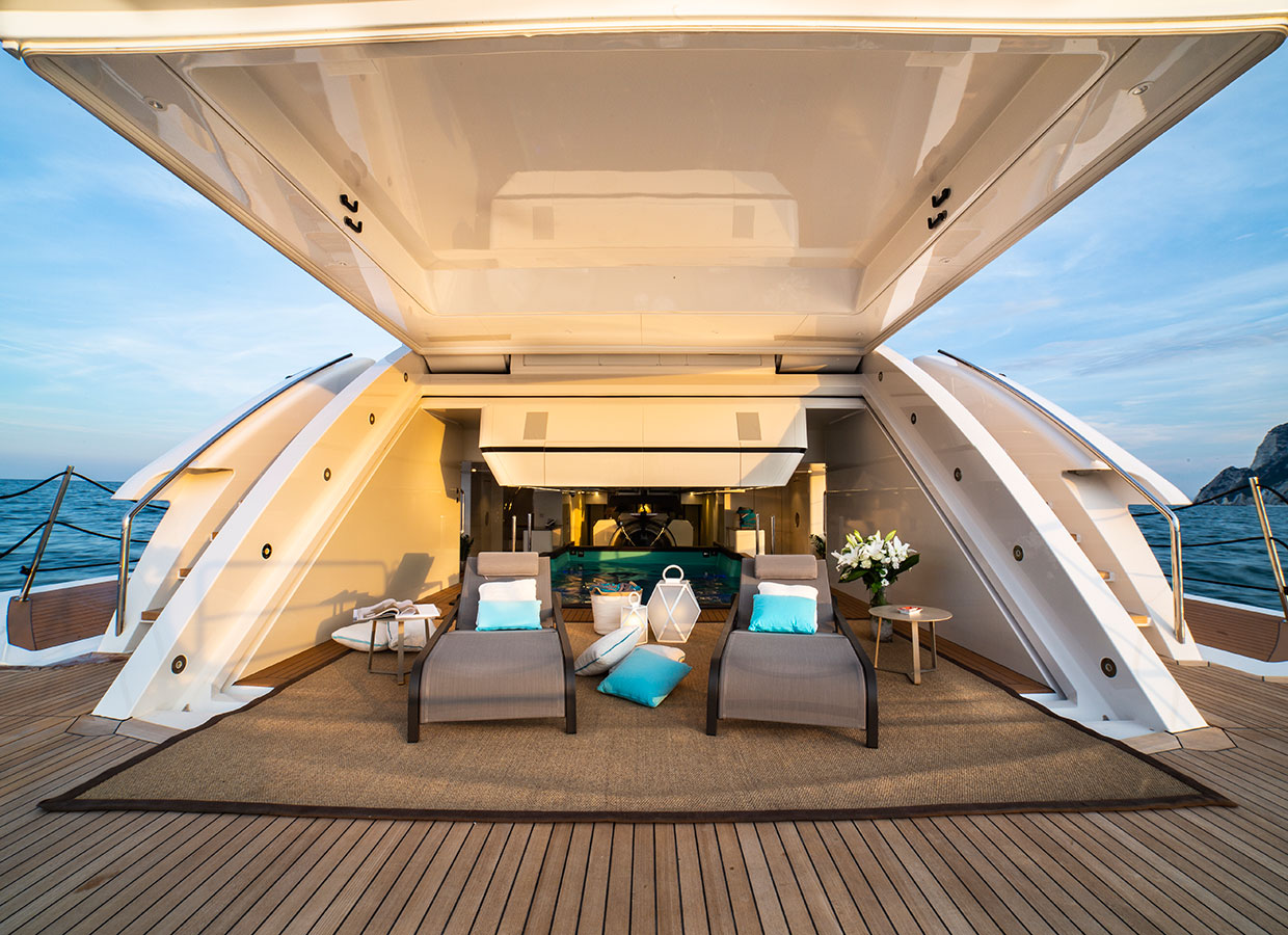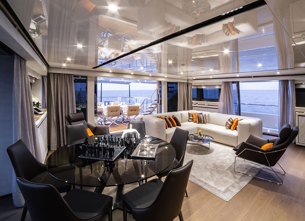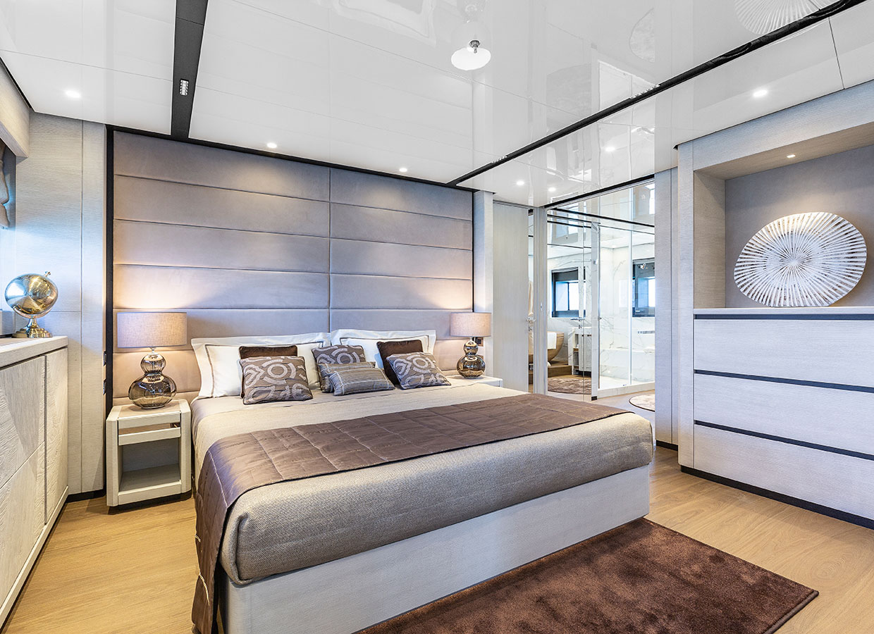 One of the most exceptional features on board can be found in the area reserved for the owner: an apartment that extends across the complete beam of the yacht with two private balconies overlooking the sea.