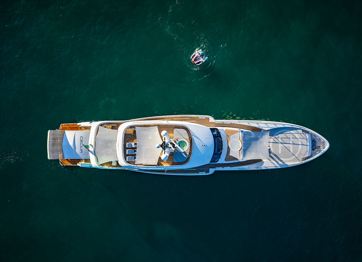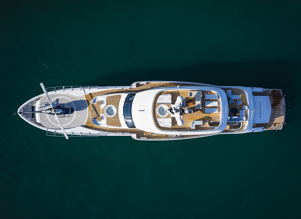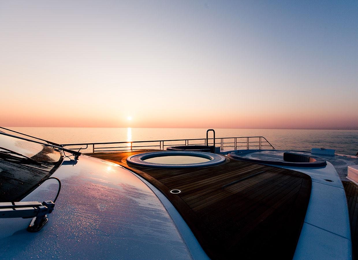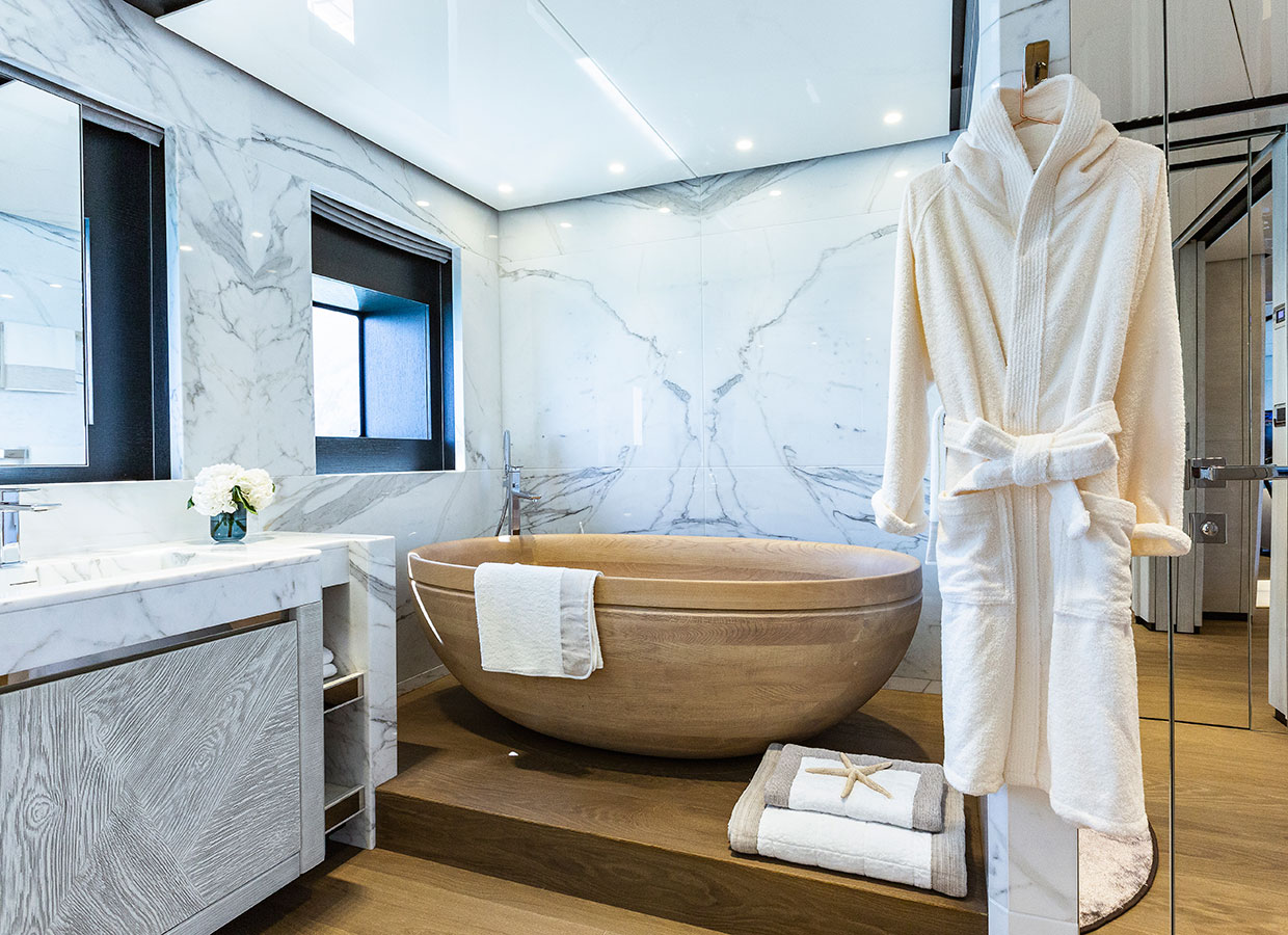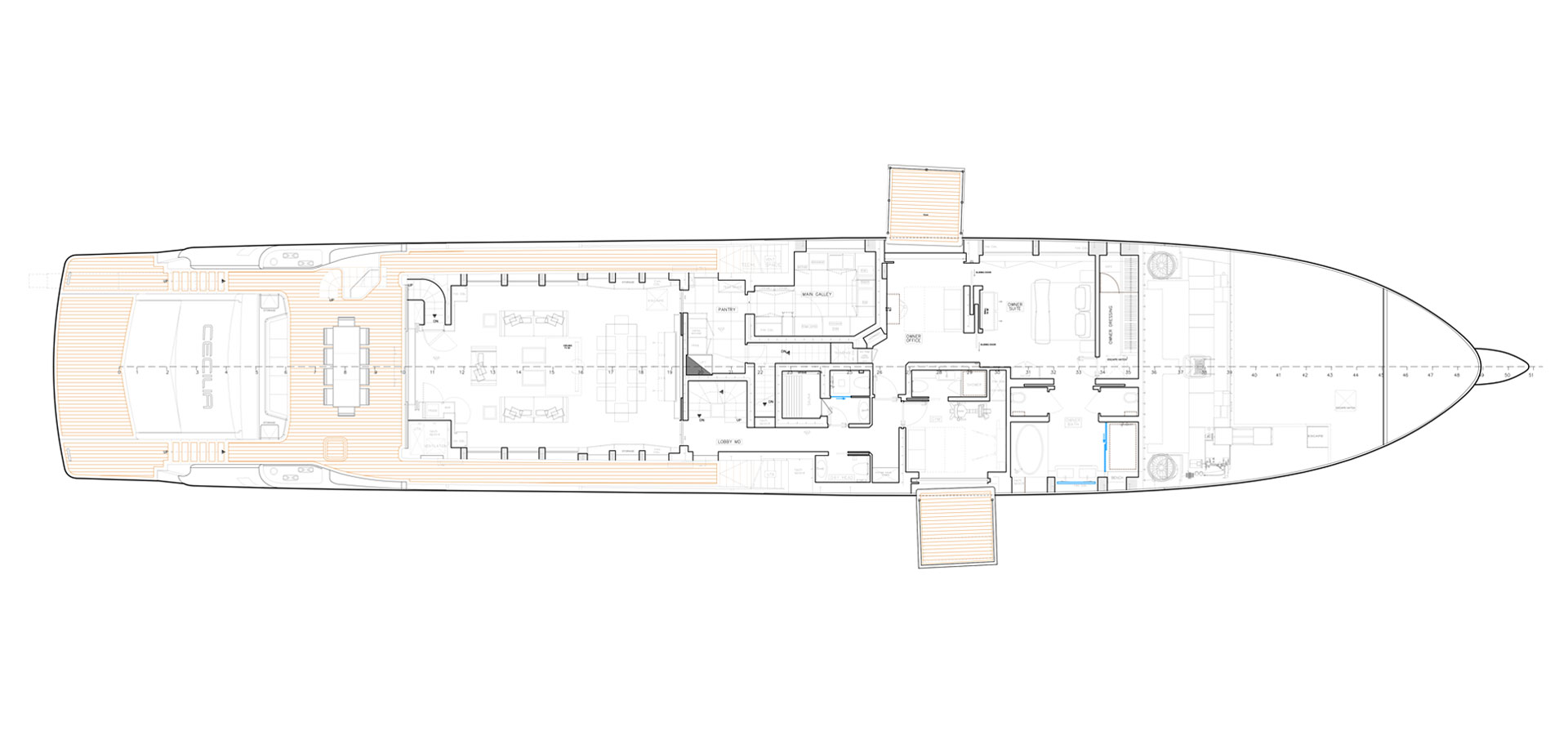 One of the most exceptional features on board can be found in the area reserved for the owner: an apartment that extends across the complete beam of the yacht with two private balconies overlooking the sea.