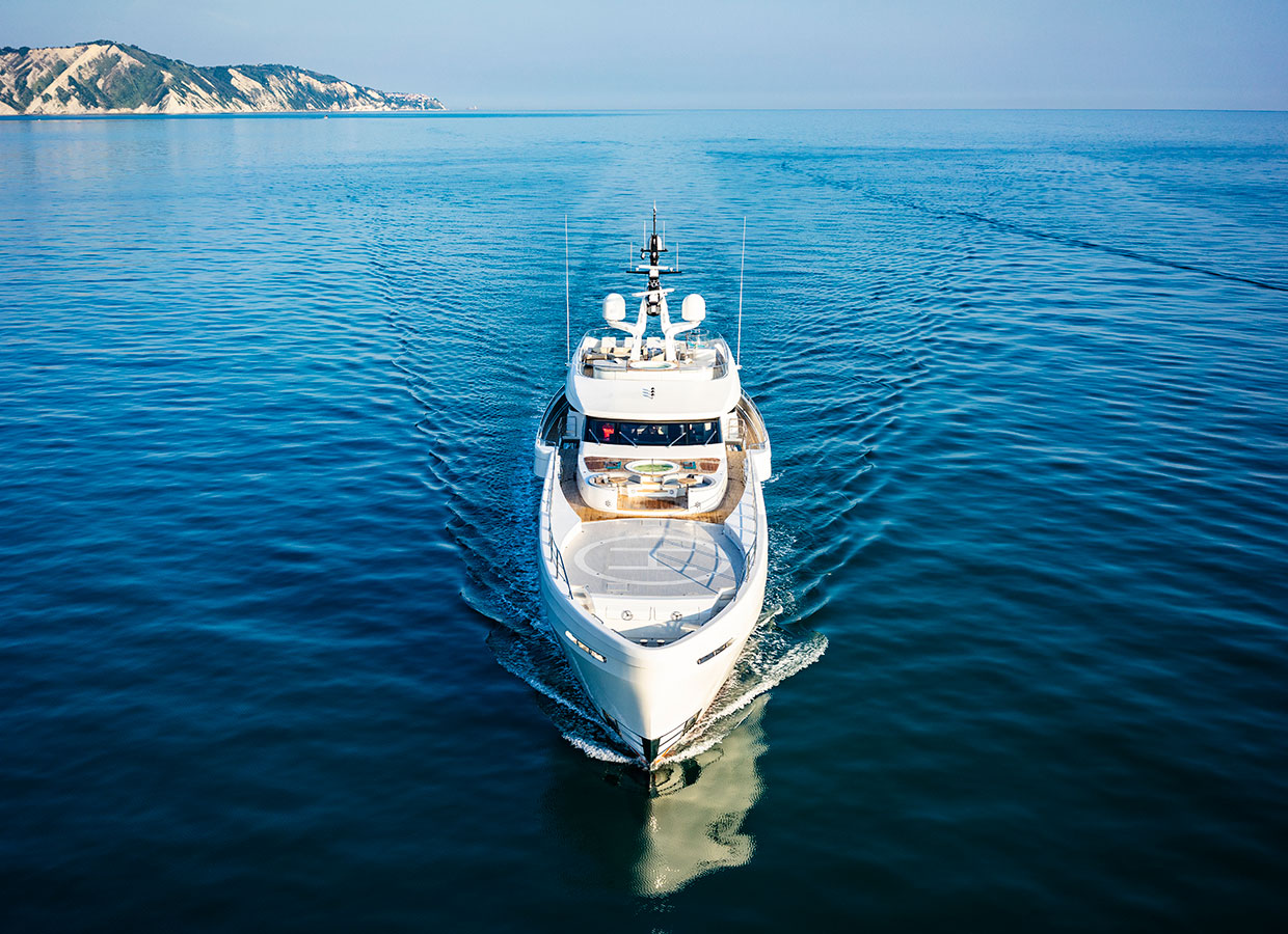 The WIDER 165 is equipped with a serial hybrid propulsion system and azimuthal thrusters, a system with four generators controlled by a smart power management system in conjunction with the very latest cutting-edge battery technology. The power produced runs the yacht and all the hotel functions bringing about many advantages, from greatly reduced consumption to highly increasing the cruising range.