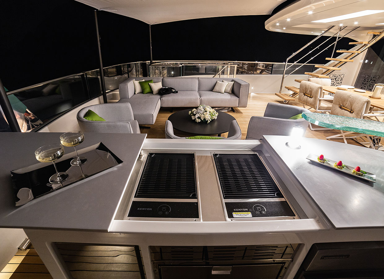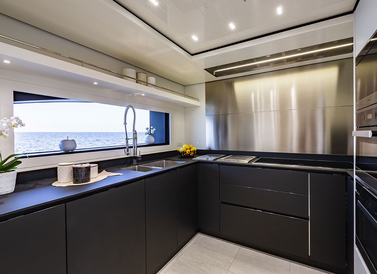 The yacht has the ability to run just on its battery power in Zero Emission Mode with silent cruising at a reduced speed of 5 knots. This is the ideal selection for short trips or in order to cast off early in the morning ensuring the utmost quiet with no generators needing to be started.