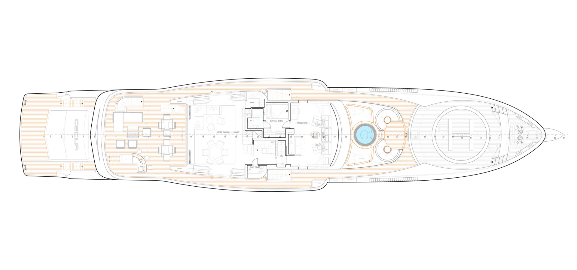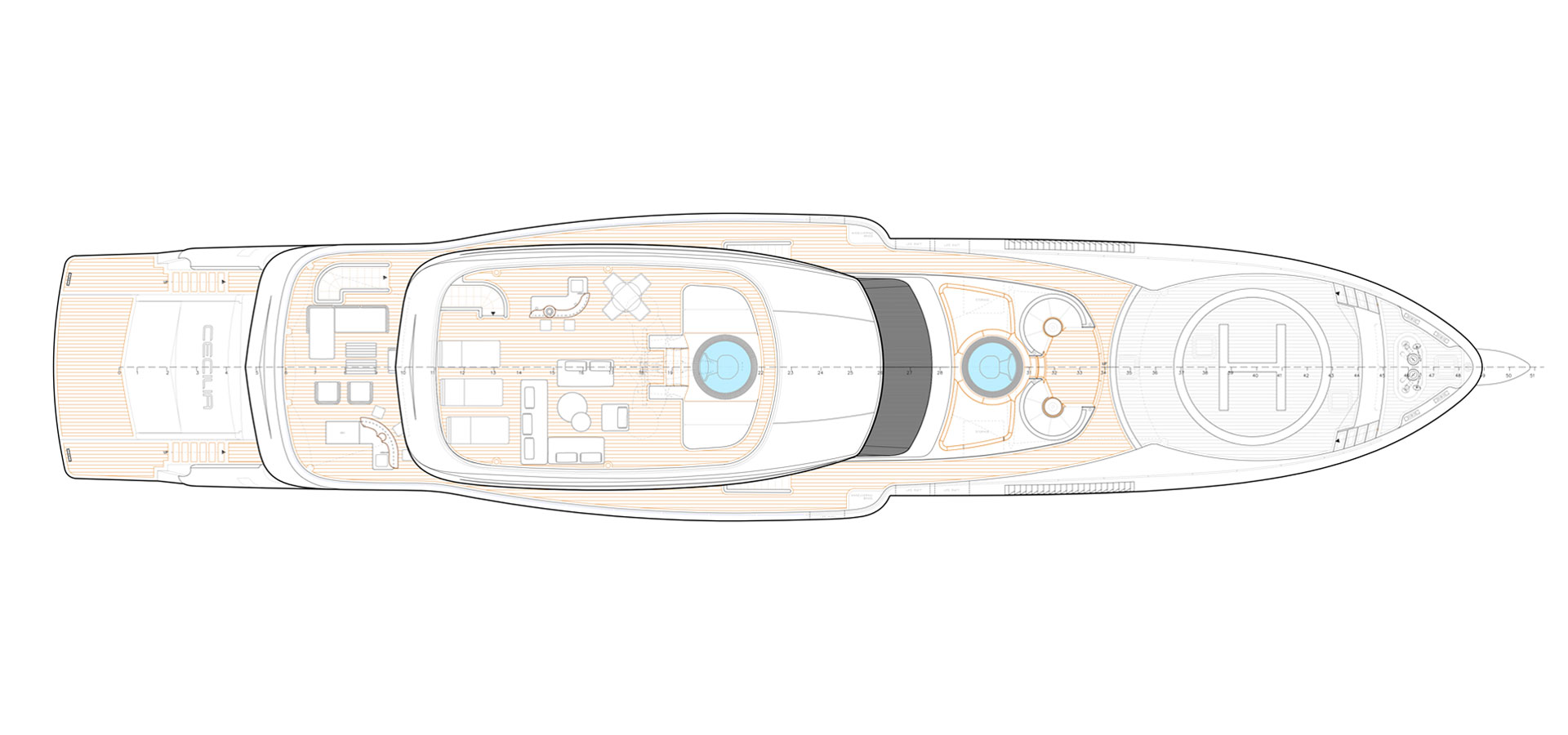 On the upper deck towards the bow there is a helipad that can easily be transformed into a dance floor.