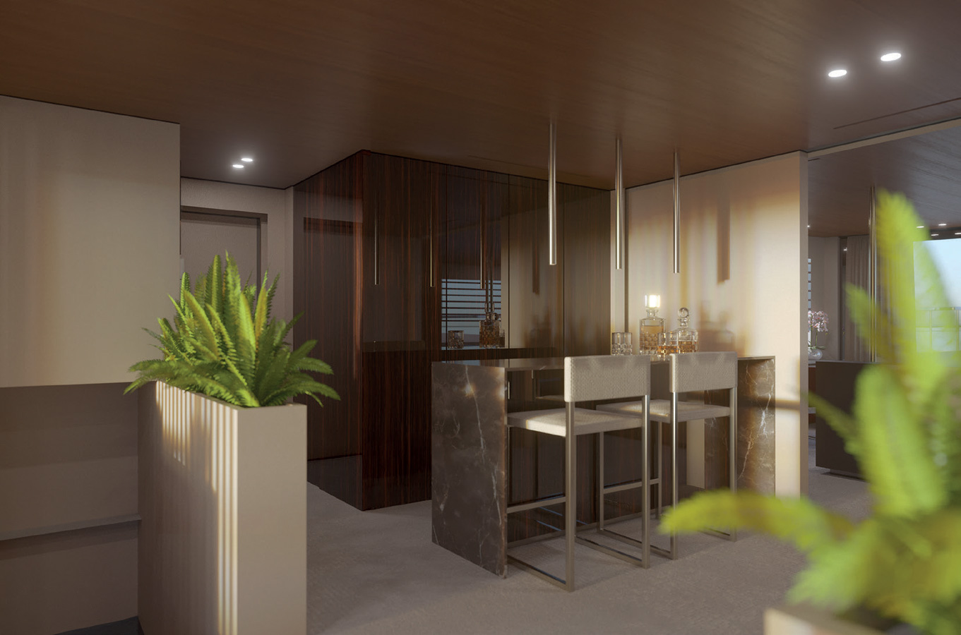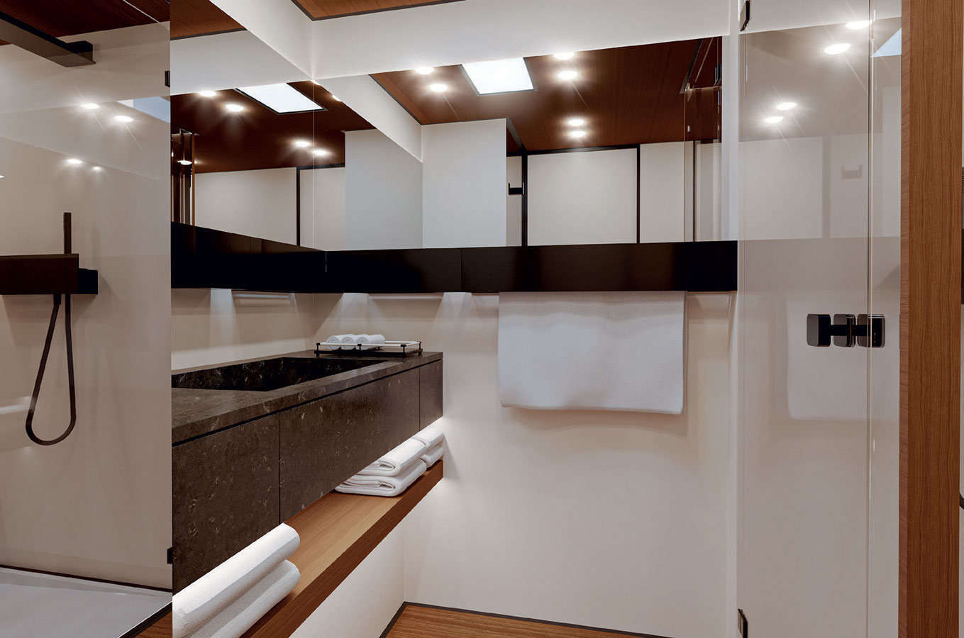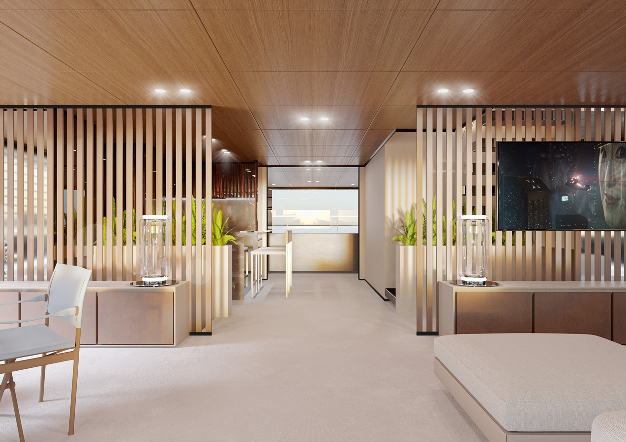 The standard below deck layout offers two platforms opening directly onto the 67 sqm beach club with direct access from the VIP cabins, a testament to Wider’s indisputable know-how in terms of versatility and sea accessibility for every guest.