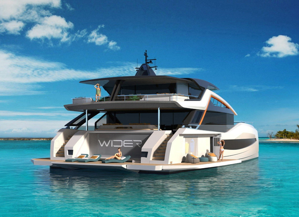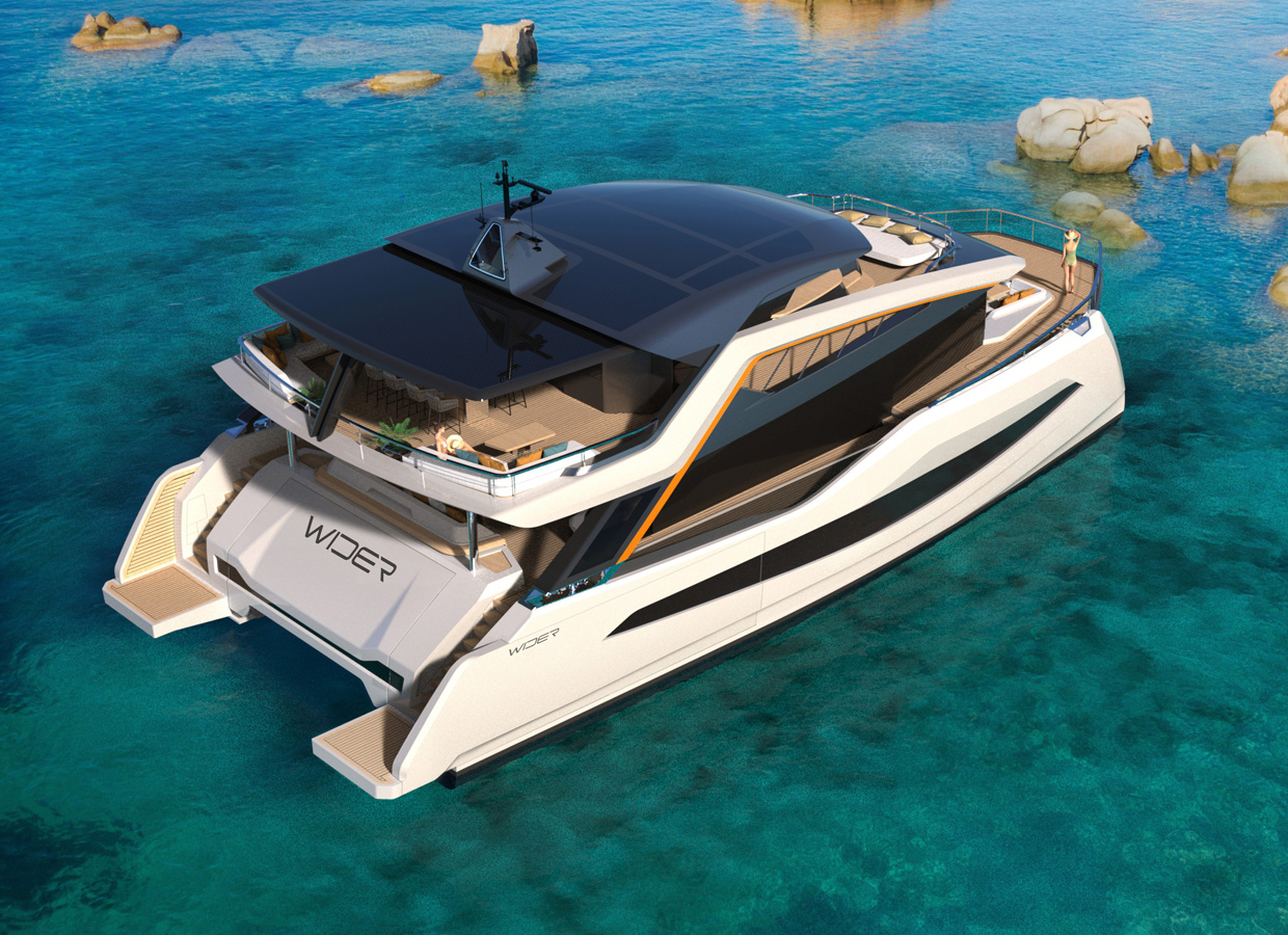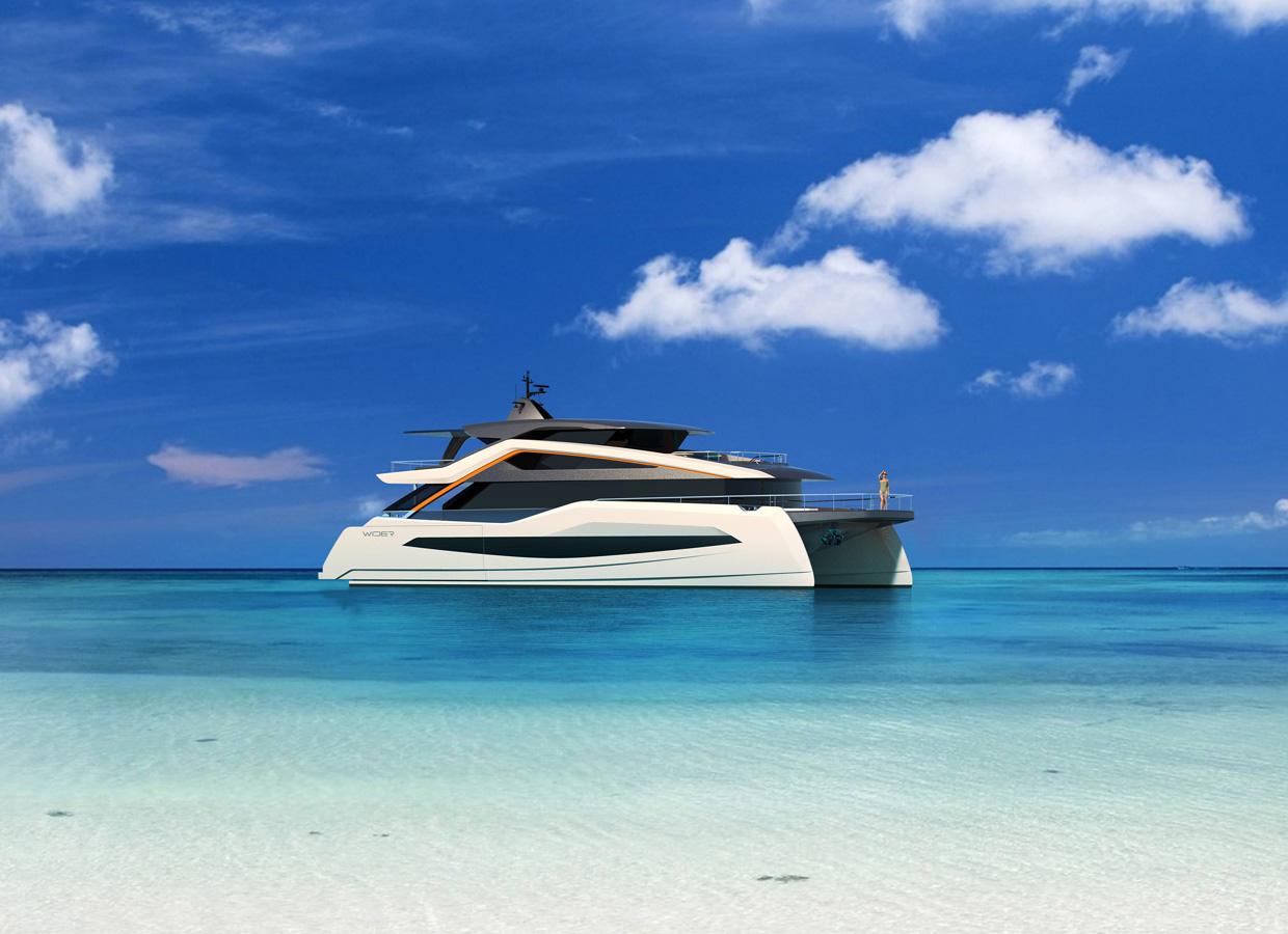 The WIDERCAT 92 will guide you along a new green route. Imagine cruising in total silence in the spaciousness, comfort and elegance of a catamaran that will take you far without leaving a trace in the environment. That definitely sounds like something never before seen in this segment. New levels of stability and comfort, cutting-edge lines and limitless enjoyment.