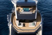 The upper deck includes another forward cockpit that the owner is free to customize by incorporating a dinette/lounge and a Jacuzzi. The helm is also housed in the upper deck and, unlike other boats of equal length and category.